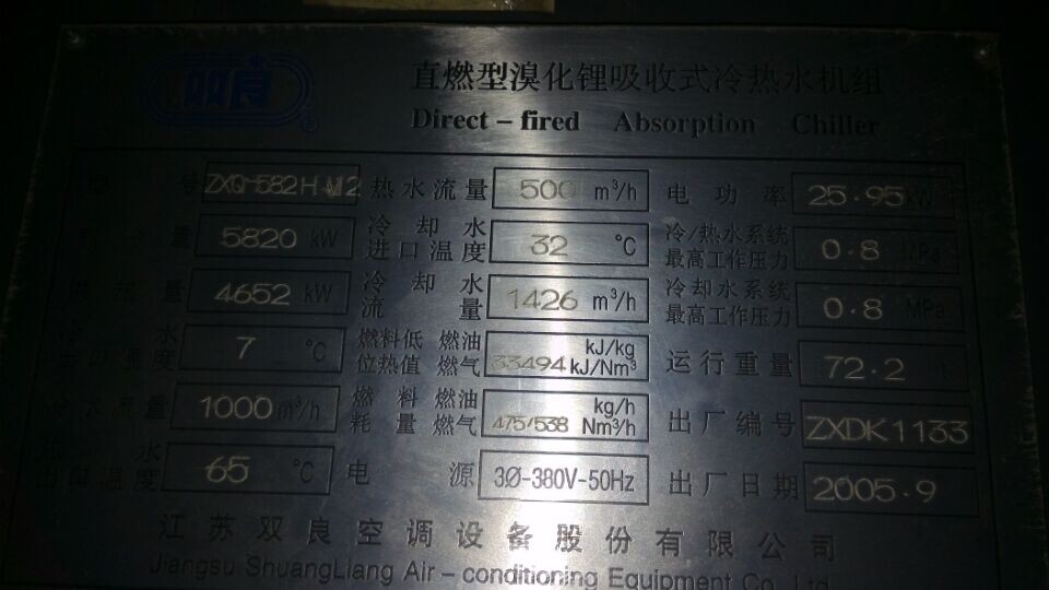 經現場看樣,對設備的充分了解我公司欲求購貴單位旗下的五臺品牌為;雙良溴化鋰中央空調,因設備安裝在負二樓無法整體移出,故只能采取現場解體,用小車駁運至一樓平地,分散運出和運輸,我公司負責溴化鋰中央空調的拆除,裝車,產生的費用由我公司承擔,分散后利用機組金屬材料及相關配件和機組內溴化鋰溶液,(欲知銅管數量,請關注中國二手溴化鋰中央空調回收網),
